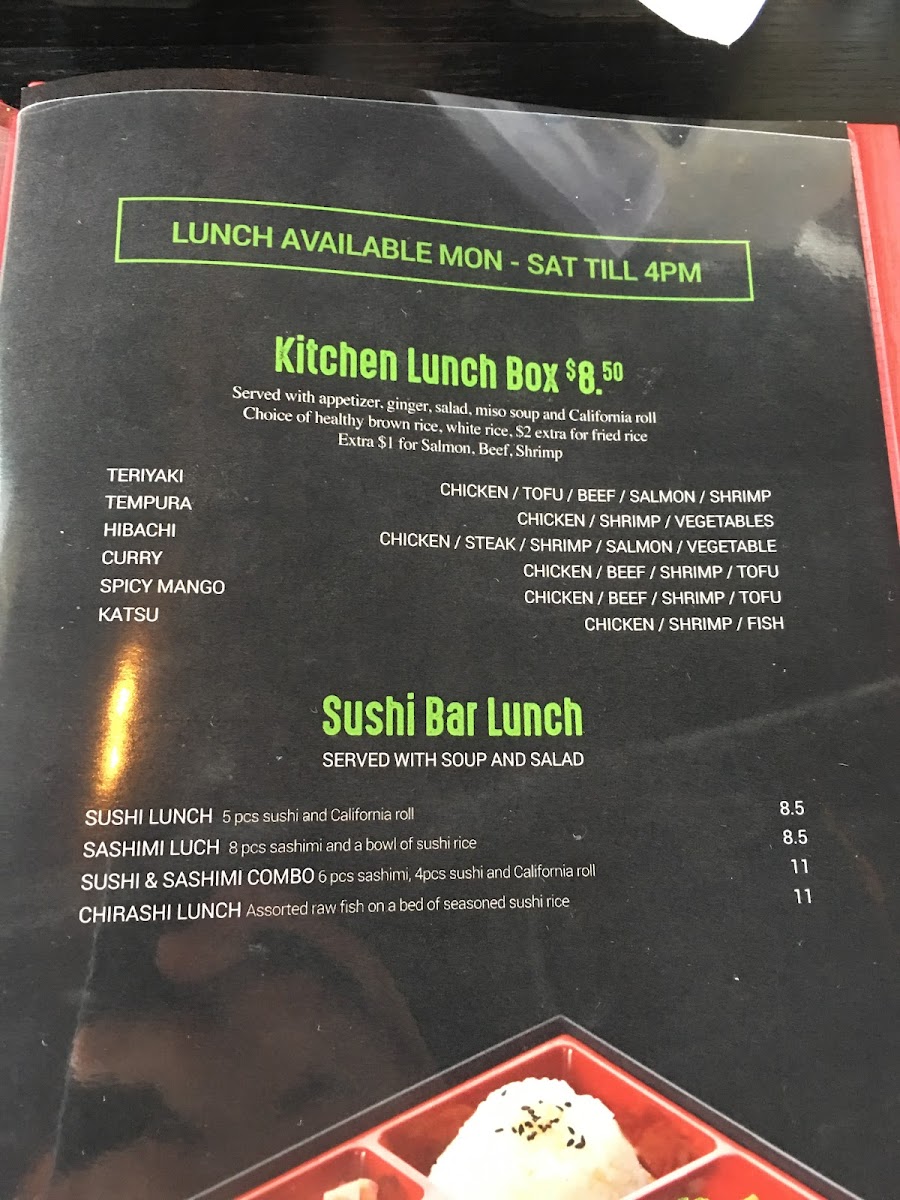 Many guests enjoy the variety of lunch boxes, which provide a convenient and satisfying meal option with choices like Teriyaki, Tempura, and Katsu. For a lighter yet fulfilling experience, the sushi and sashimi lunch specials offer fresh cuts paired with seasoned rice, perfect for midday or early evening dining. The atmosphere at Avocado Sushi complements the menu’s inviting simplicity—fresh, clean flavors served in a cozy setting that lends itself well to both quick meals and leisurely visits.